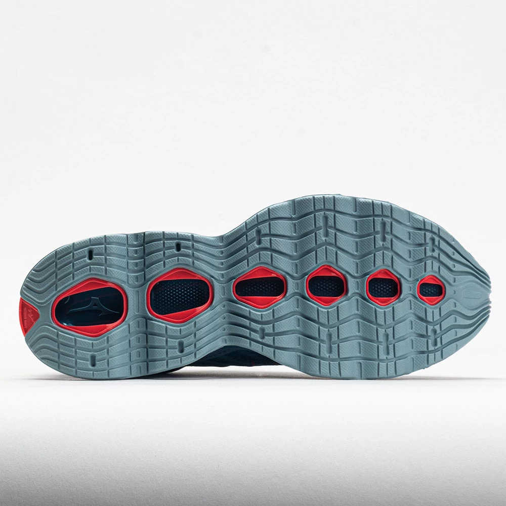 Midsole: MIZUNO WAVE® plate absorbs energy from impact, providing a stable platform and superior cushioning. U4ic midsole delivers optimal shock absorption for a smooth ride. U4icX Strobel lasting board ensures a comfortable underfoot feel. Infinity Wave Plate disperses impact at foot strike for cushioning and durability.